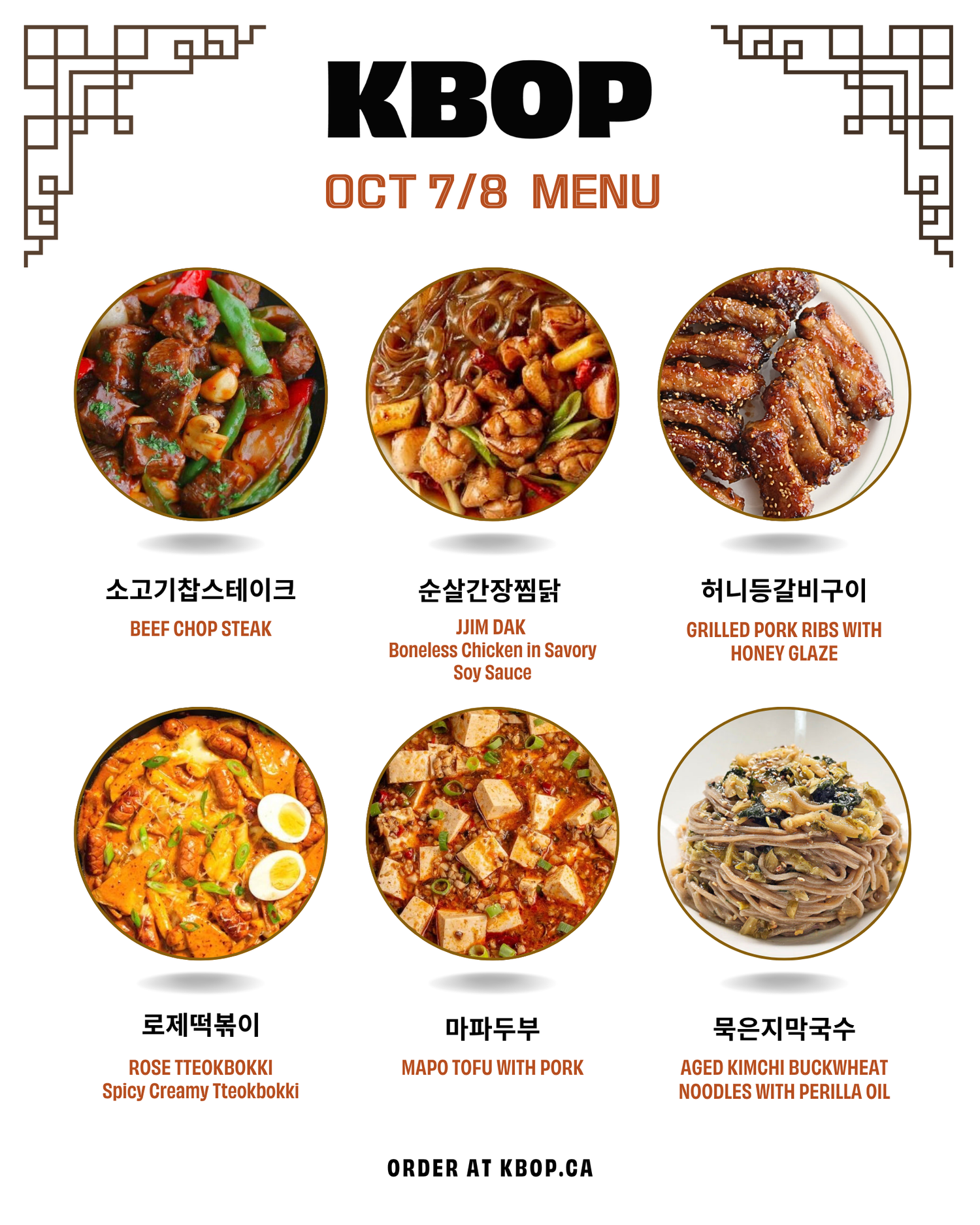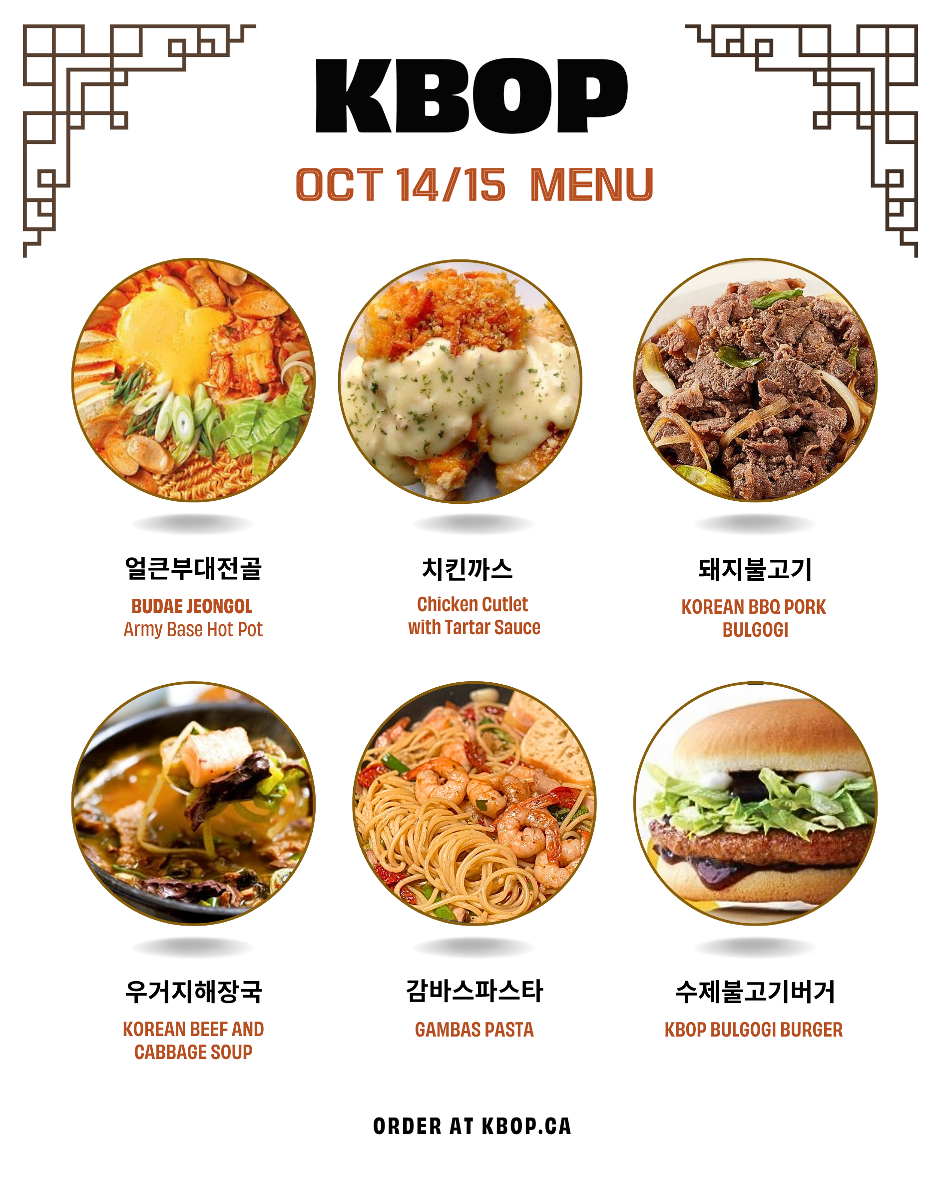 New orders will receive this menu set. Delivered on Oct. 14/15
